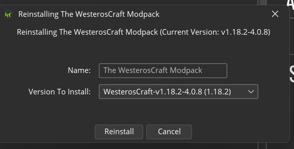 WesterosCraft updates the modpack on a semi-regular basis with new mods, bug fixes and additional blocks. When this happens, you need to update.
